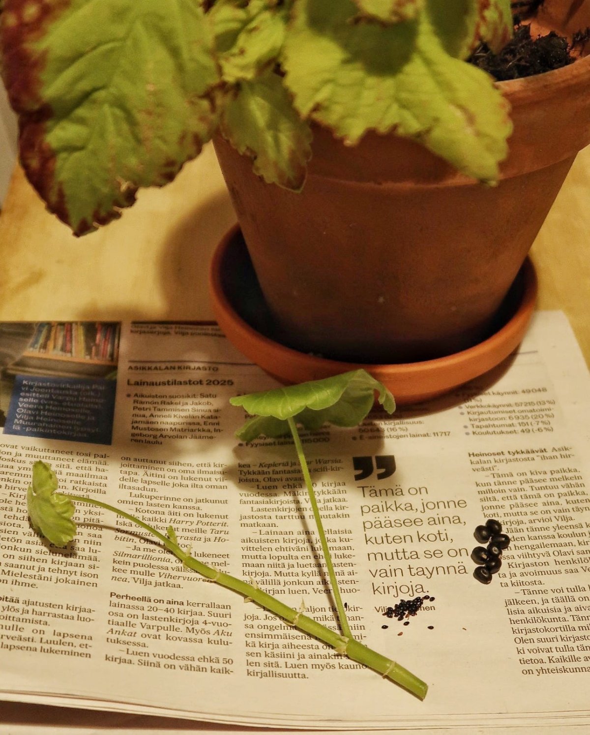 Paikalta löytyy pöytiä sekä sanomalehtiä pakkausmateriaaliksi tai istutuspotin/biopussin tekoon. Tule opettelemaan!