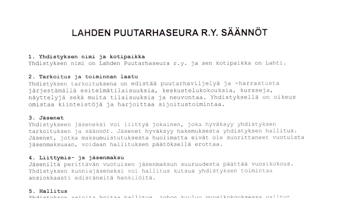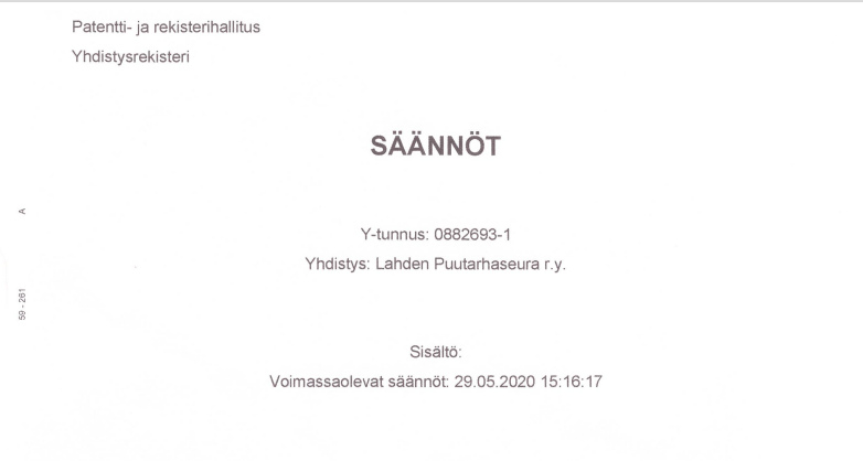 Patentti- ja rekisterihallitus /Yhdistysrekisteri on vahvistanut yhdistyksemme voimassaolevat säännöt 29.5.2020.